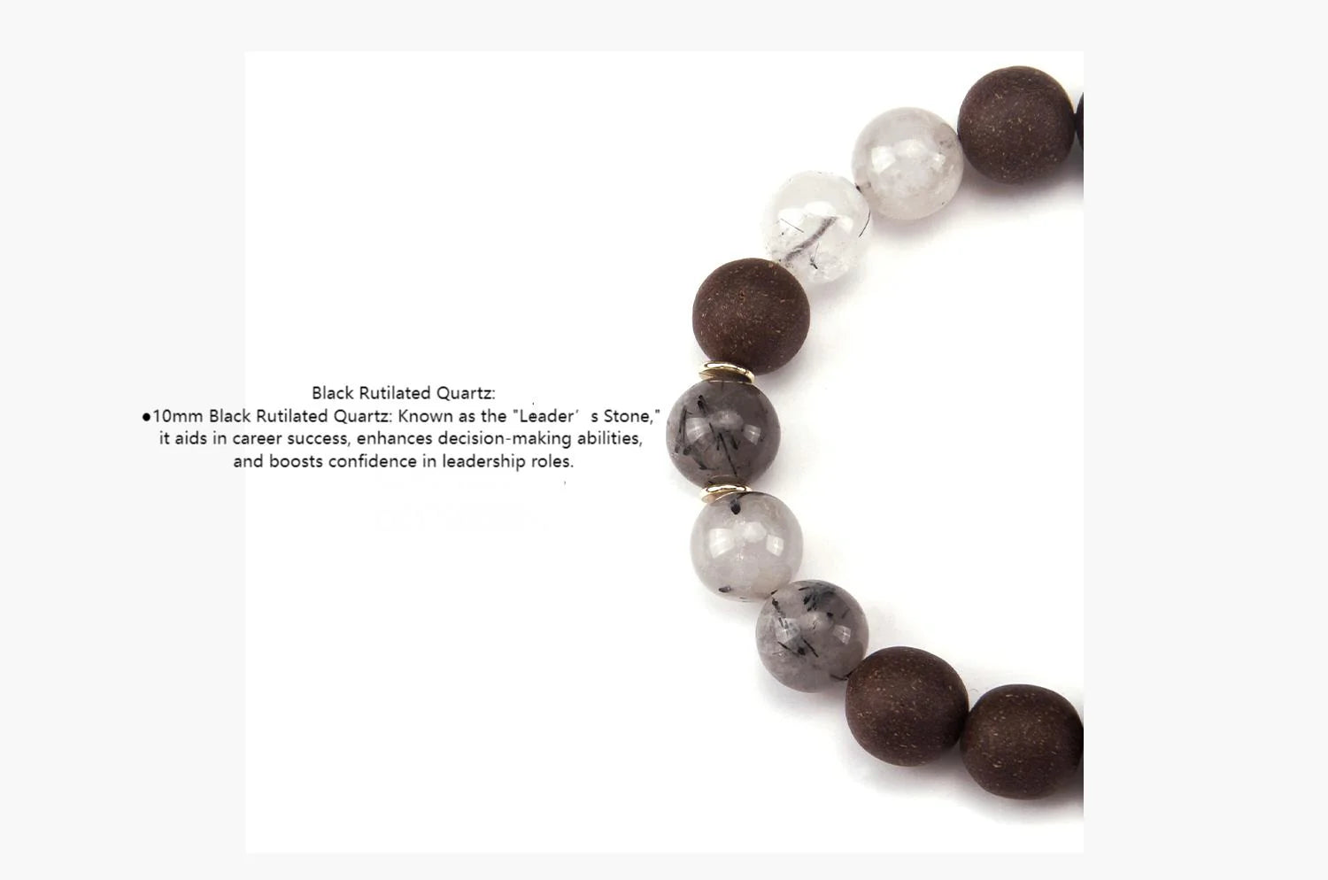 - Cuarzo rutilado negro de 10 mm: conocida como la "Piedra del líder", ayuda al éxito profesional, mejora la capacidad de toma de decisiones y aumenta la confianza en los roles de liderazgo.